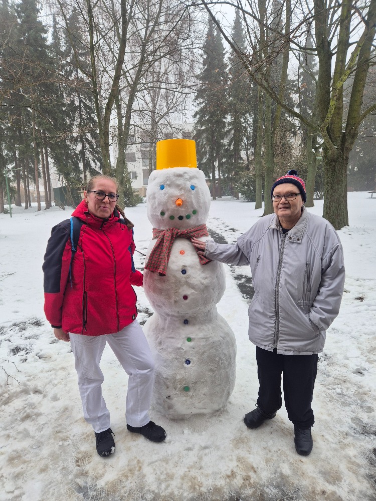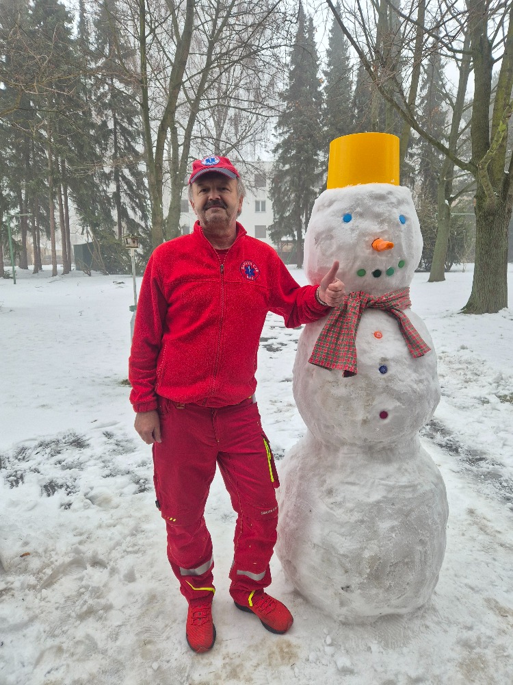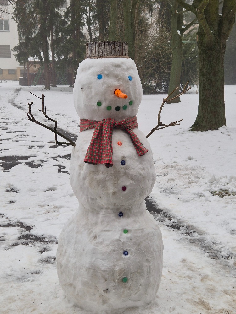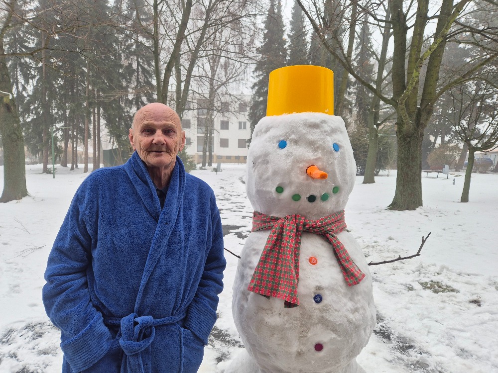 "PAN SNĚHULÁK" z okna se na nás usmívá a vítá každého, kdo přichází.