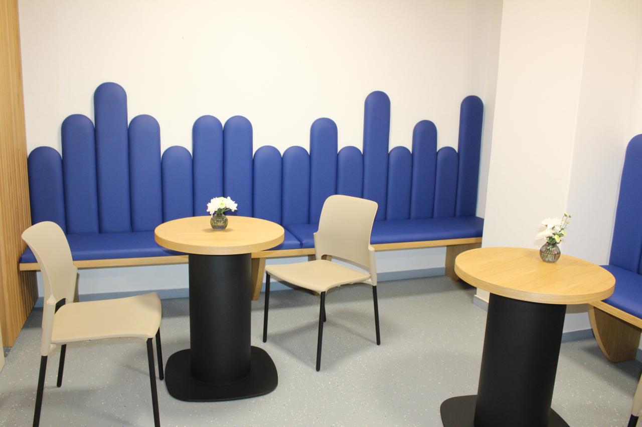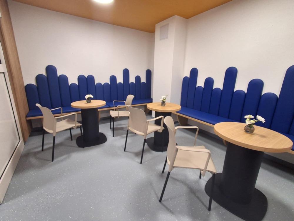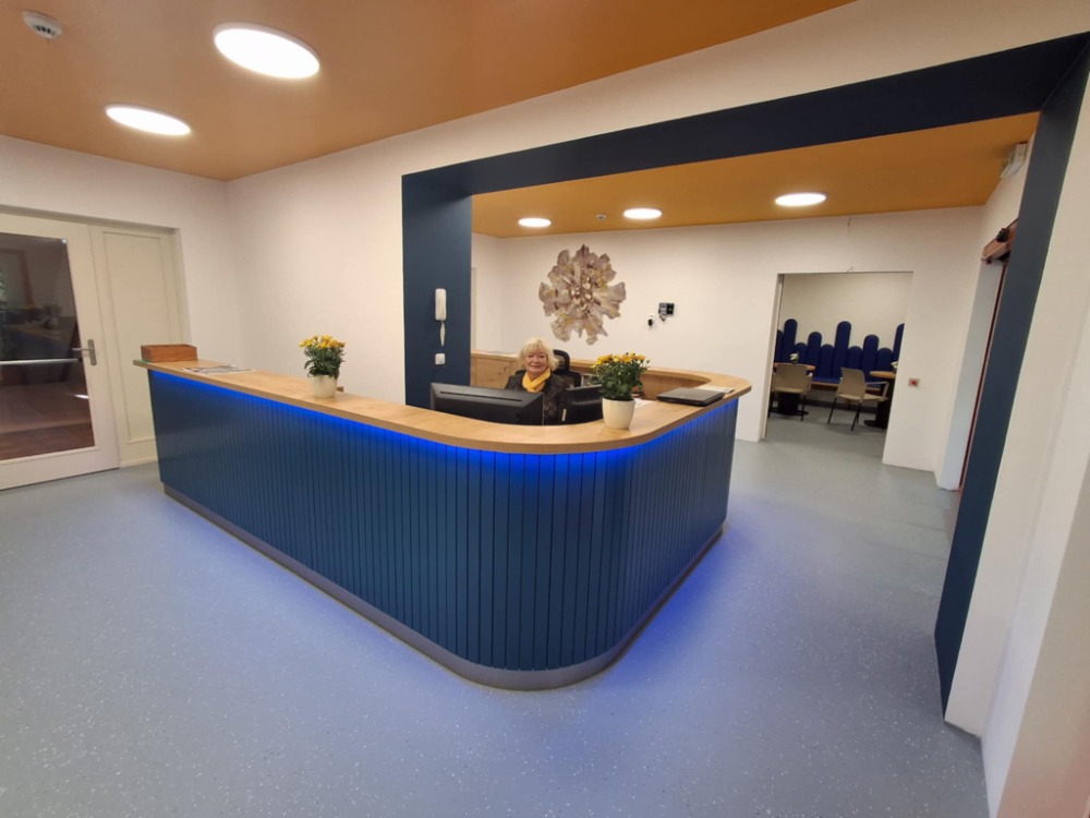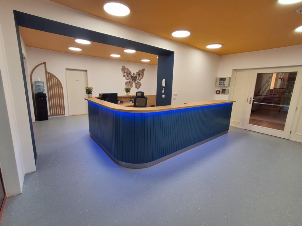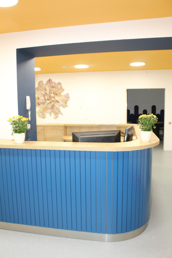 Před rekonstrukcí zde stála malá, uzavřená, ohraničená recepce, která byla stísněná a dnes již nevyhovující. Stará recepce je pryč – zcela odstraněna a místo ní vznikl otevřený, světlý a moderní prostor, který pohodlně bude sloužit návštěvníkům i zaměstnancům. Součástí rekonstrukce je také nová kavárna, kde si mohou klienti i návštěvníci příjemně posedět a odpočinout si během pobytu v centru.